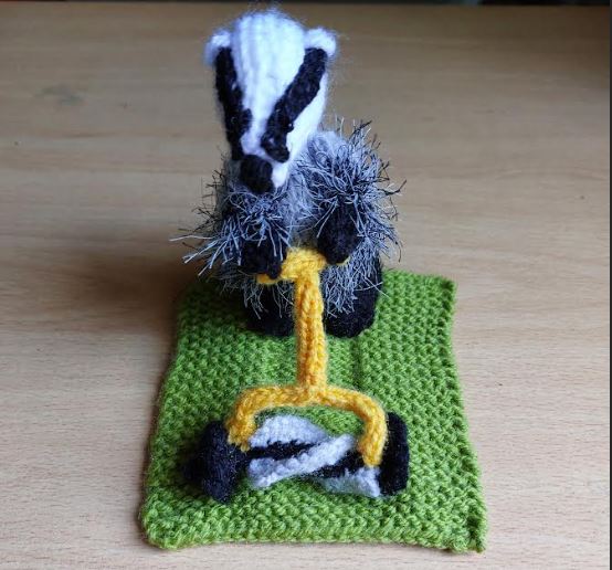 Knited Badger mowing the lawn v3