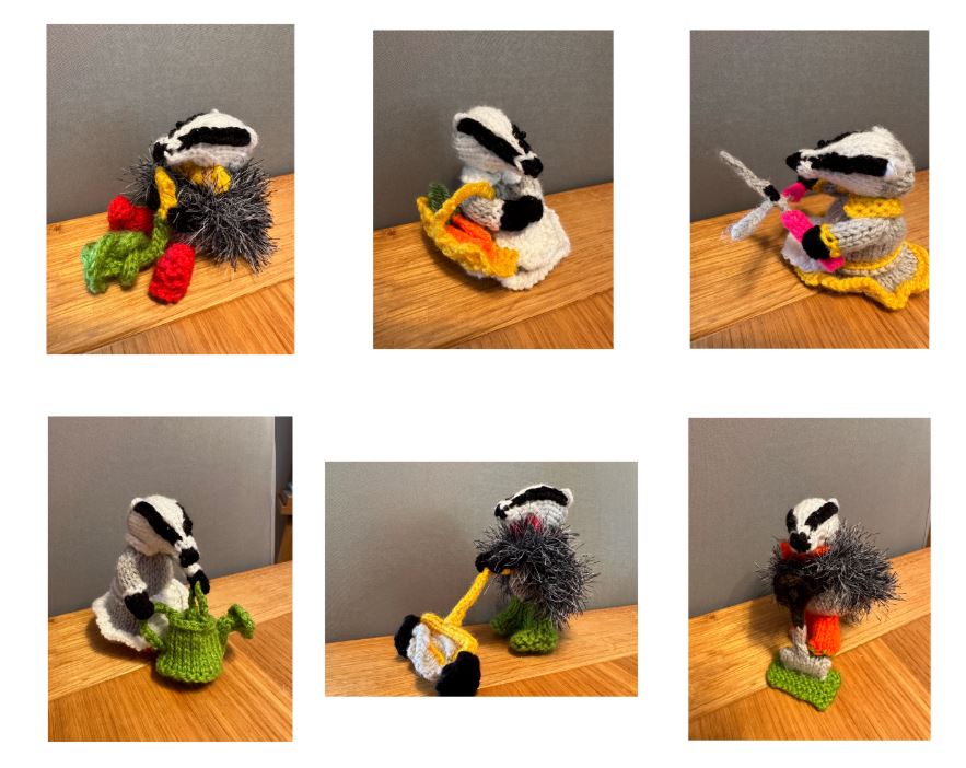 If you've bought a pattern or two for the 7cm mini badgers, you might want to give it a garden tool! If you'd like to knit a garden tool for your mini badger, this pattern will give you instructions for a hose pipe, basket of carrots, shears, watering can, lawn mower and a spade in the ground.